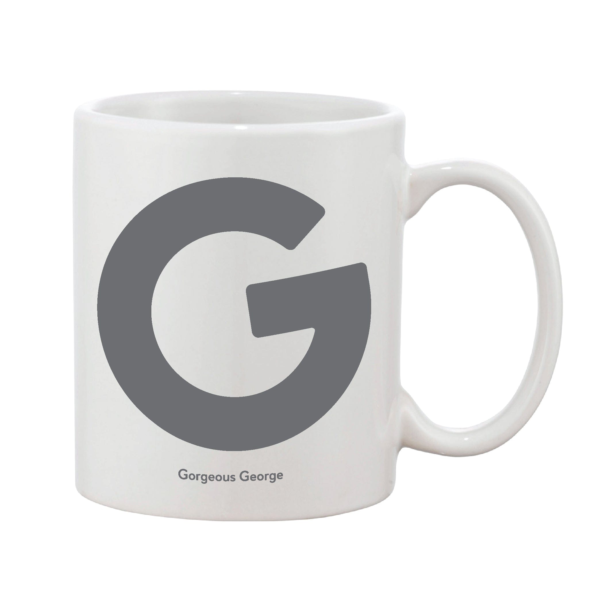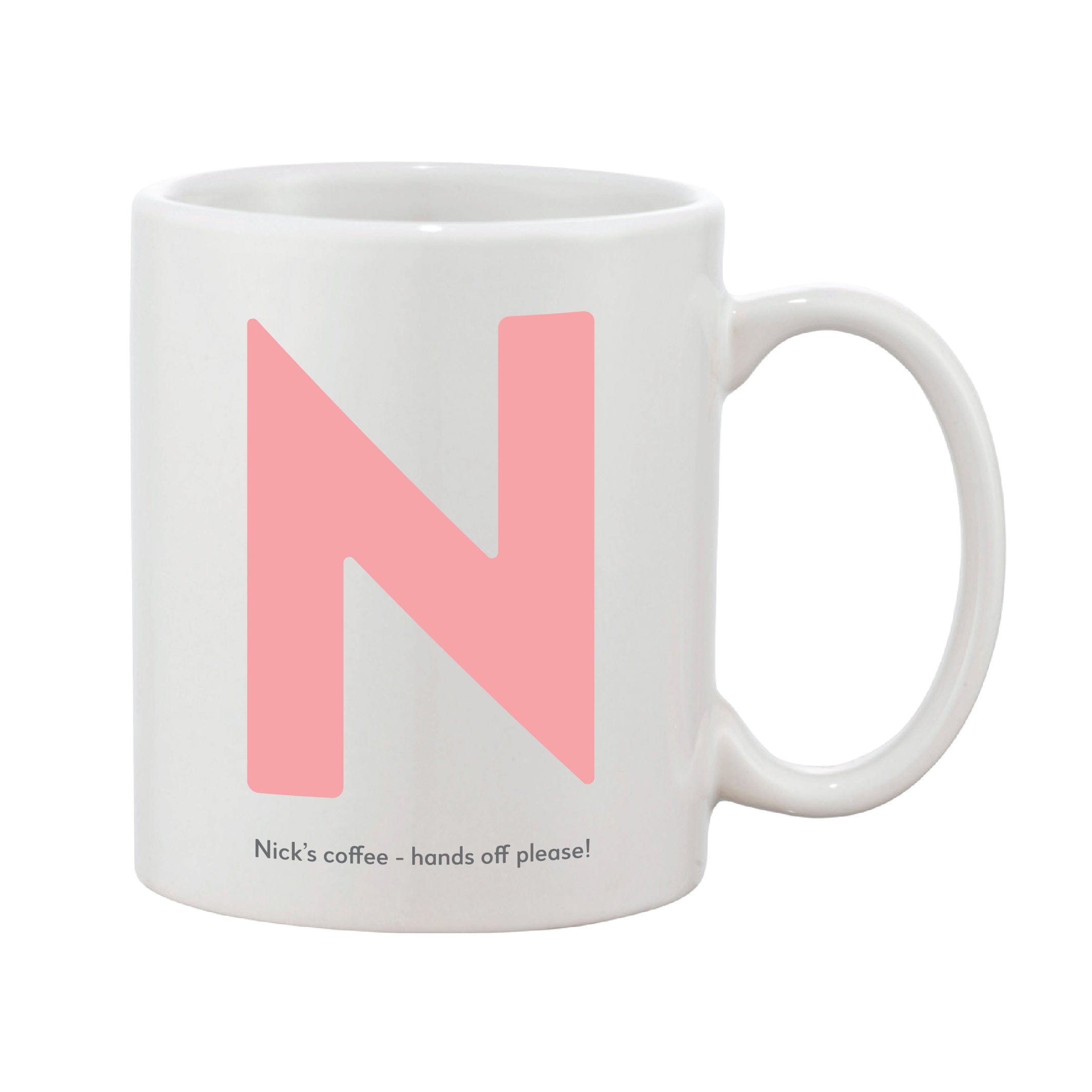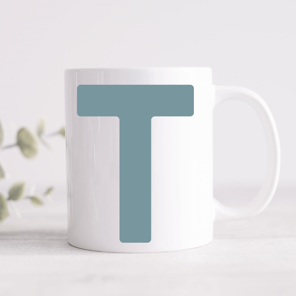 Mug with a simple initial in a rounded bold font that can also be personalised with a message of your choice (optional).