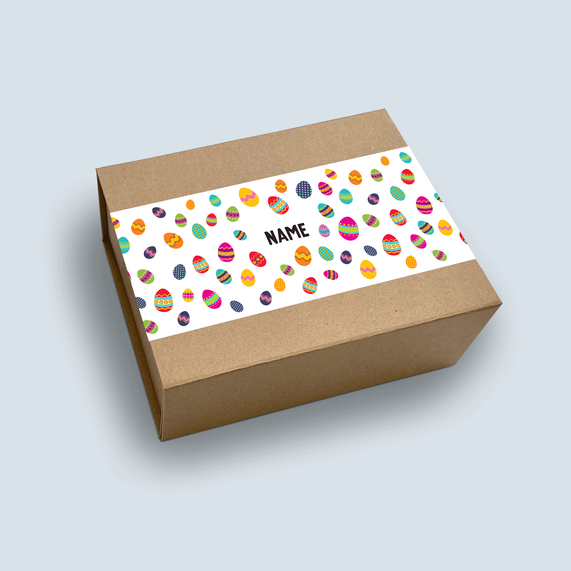 Personalise the bright belly band with any name, and fill the box with your choice of Easter gifts.