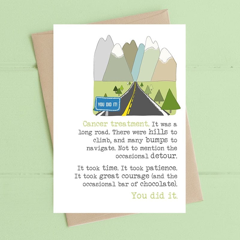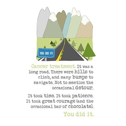 A card to celebrate a massive milestone of finishing treatment, and to show you understand how difficult it would have been for them.