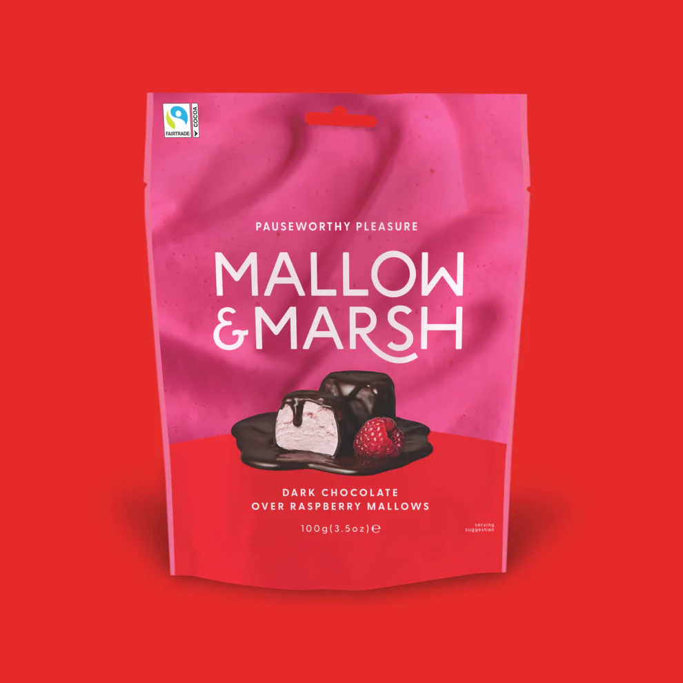 Fresh and fruity raspberry marshmallows are coated in a luxurious Belgian Fairtrade 70% dark chocolate.