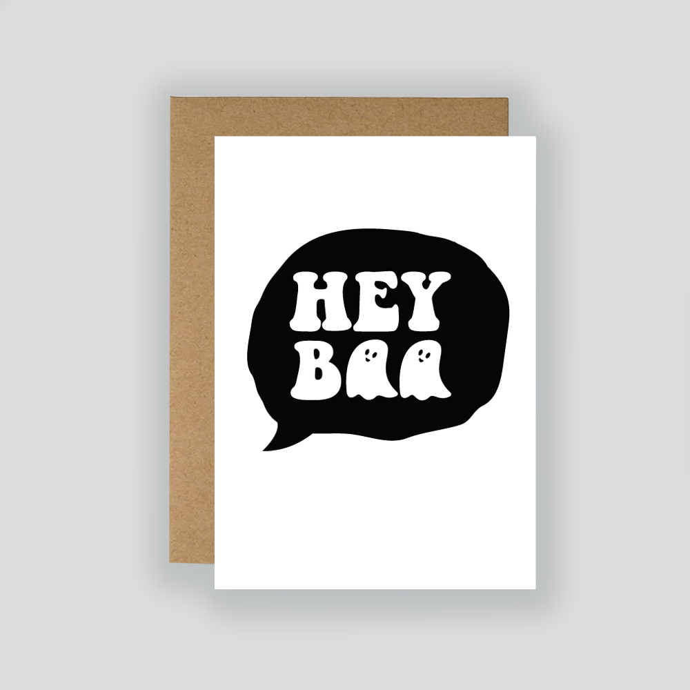 A cheeky little greeting with a spooky twist! Our ‘Hey Boo’ card is the perfect way to send some Halloween love — sweet, simple, and full of fun.