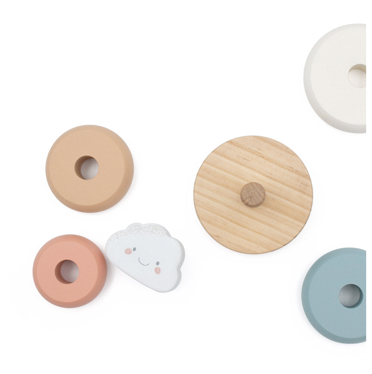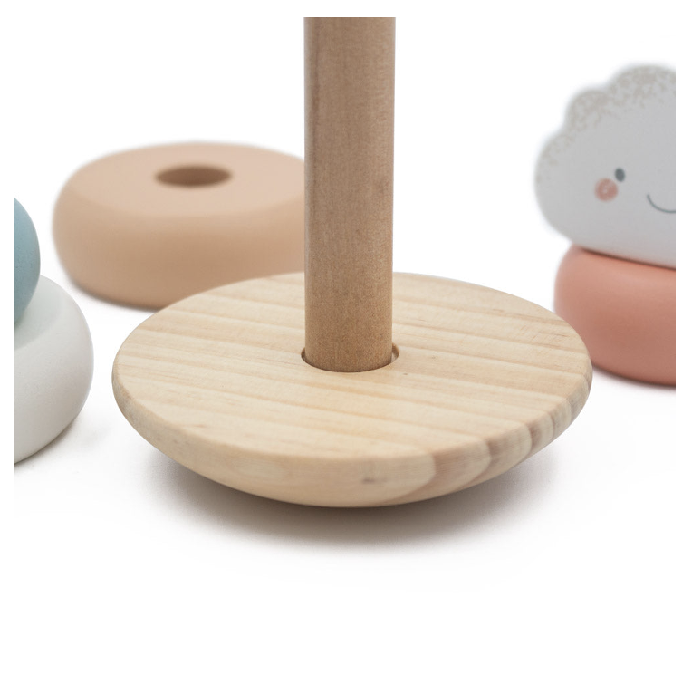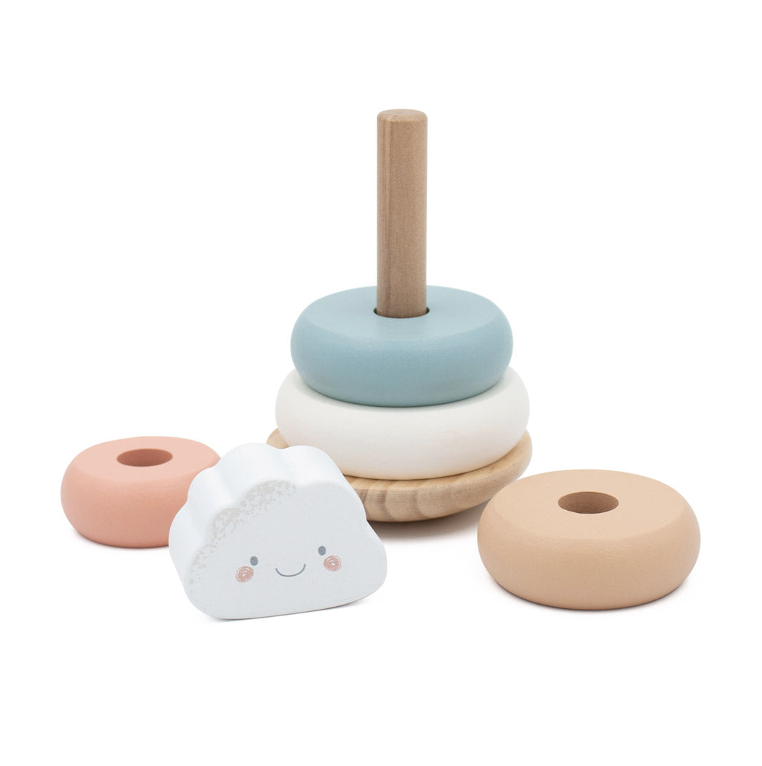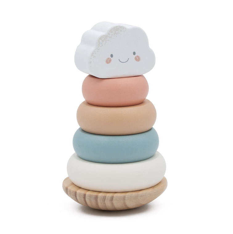 A dreamy twist on a classic toy, the Cloud Wobbly Stacker helps little ones explore balance, sequencing, and dexterity.