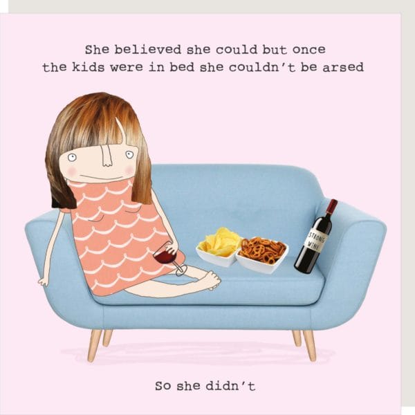 Text reads ‘She believed she could but once the kids were in bed she couldn’t be arsed so she didn’t’.