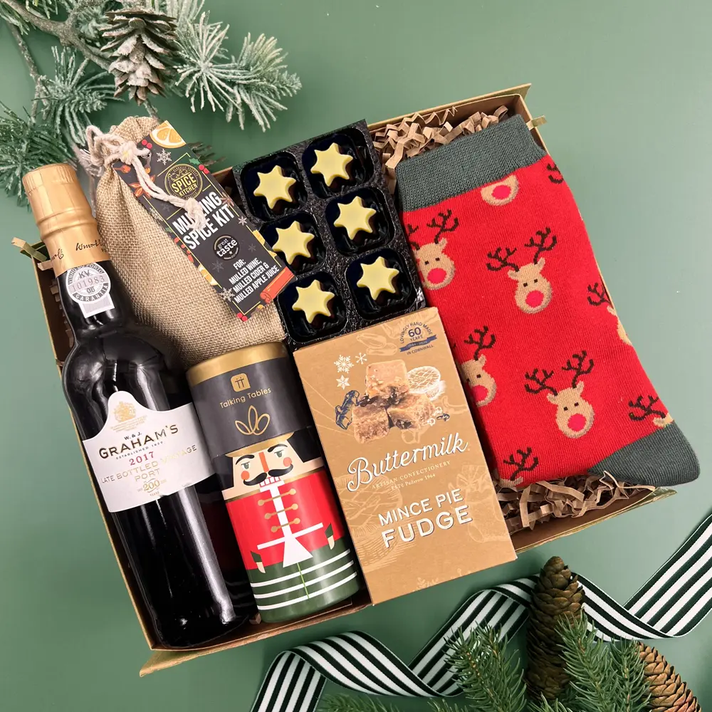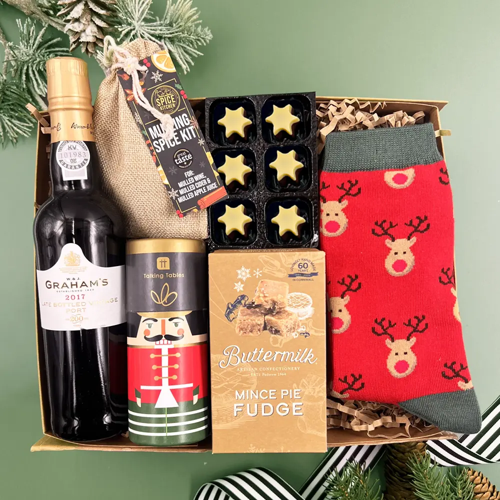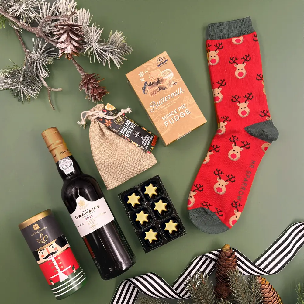 A luxurious hamper filled with the delicious festive flavours we all know and love, plus some cosy socks and a fun festive game for the whole family.