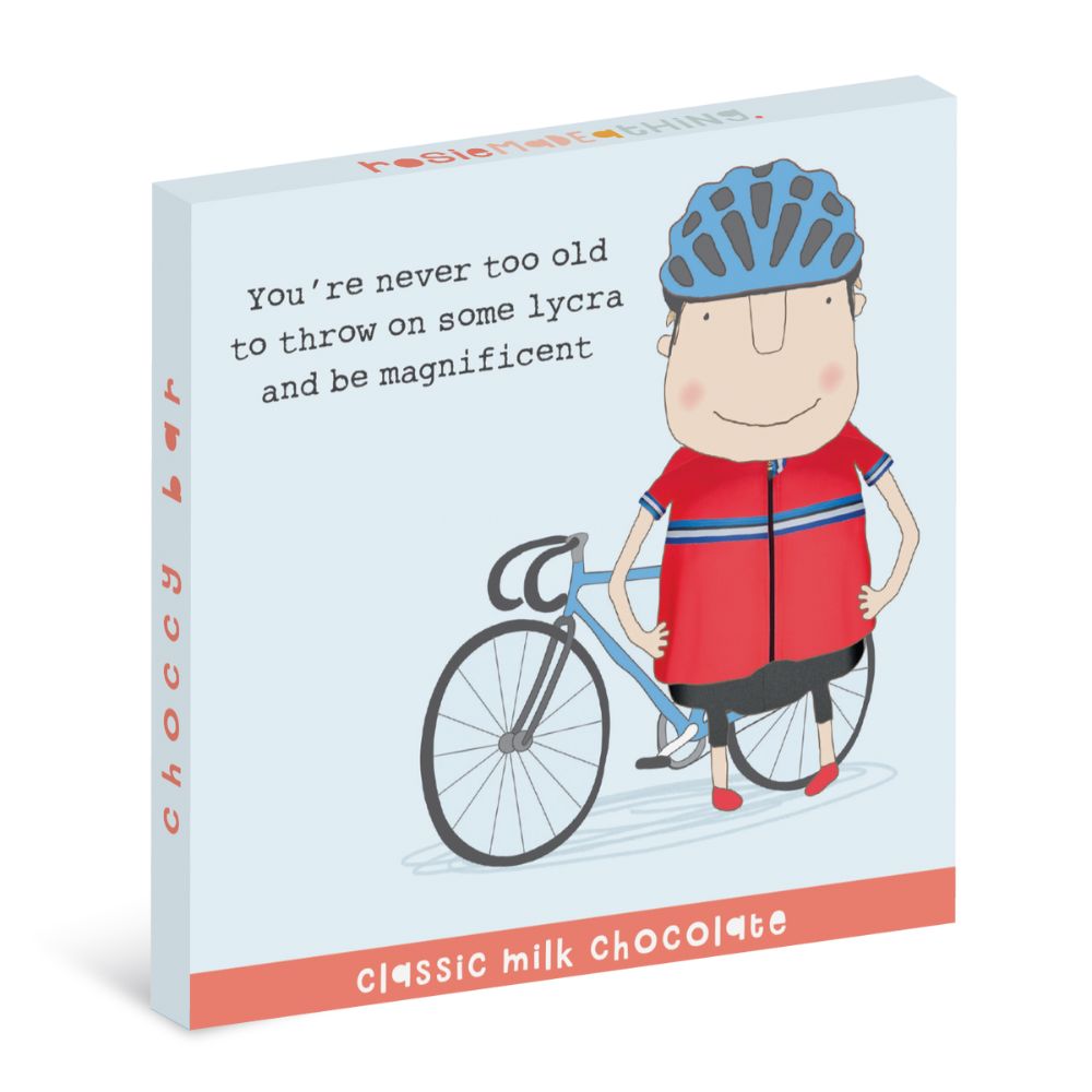 As the bar says, you’re never too old to throw on some lycra and be magnificent! A lovely gift for a cycling enthusiast on their birthday, this funny chocolate bar is handmade in a little factory in Wales and taste delicious.