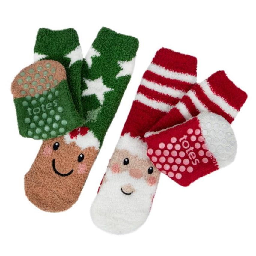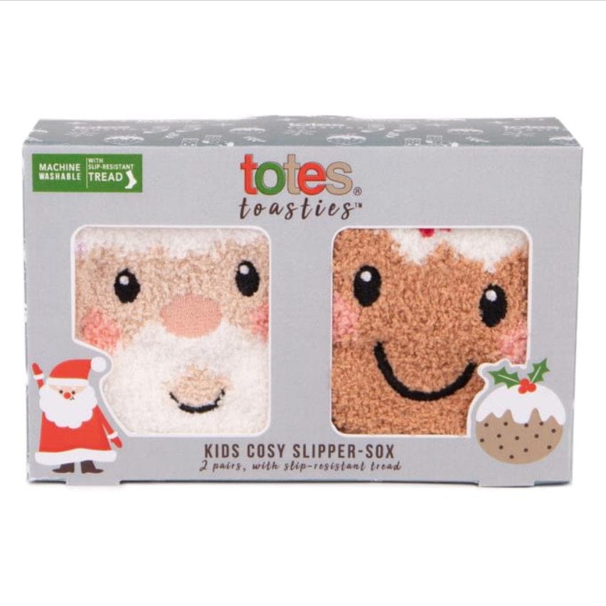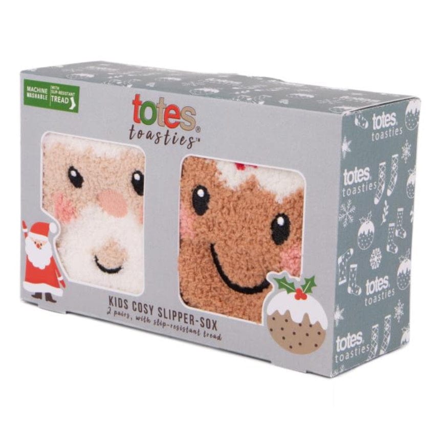 Totes Unisex Kids Cosy Slipper Socks – Christmas Pudding & Santa