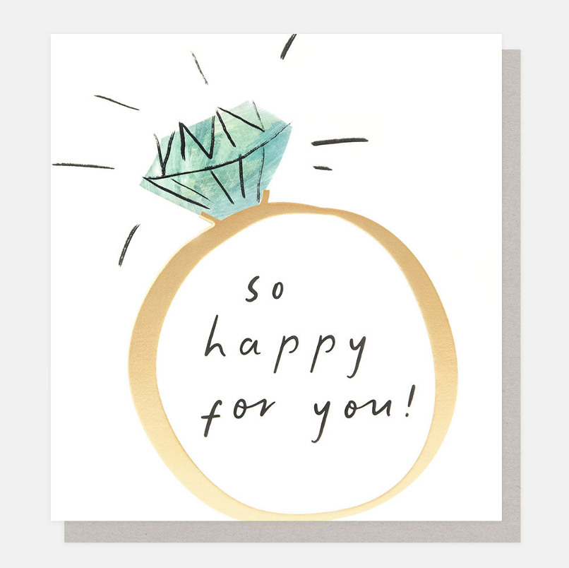 Celebrate their engagement with this beautiful gold diamond ring ‘so happy for you’ engagement card, finished with embossing and gold foil for that extra special touch.
